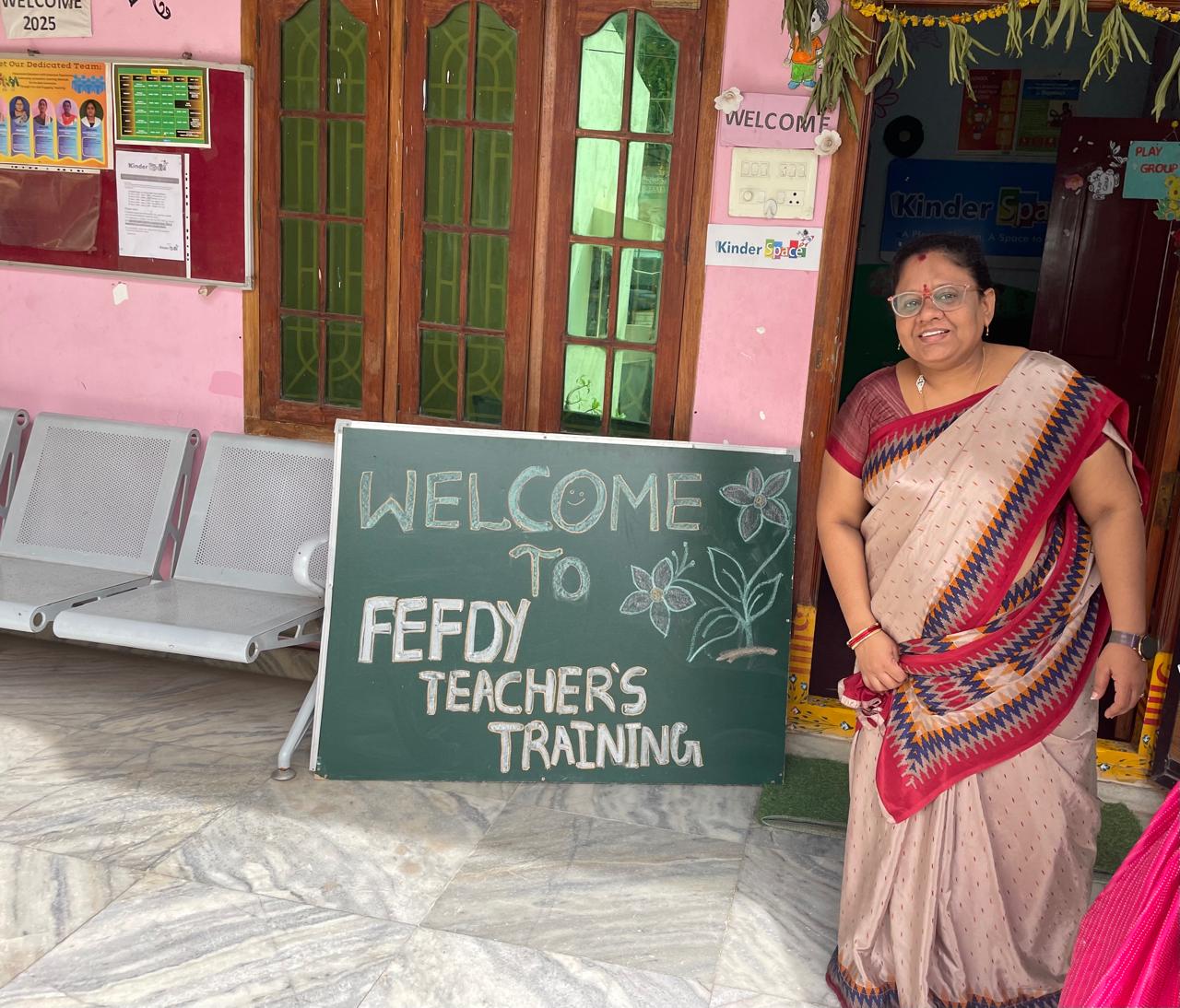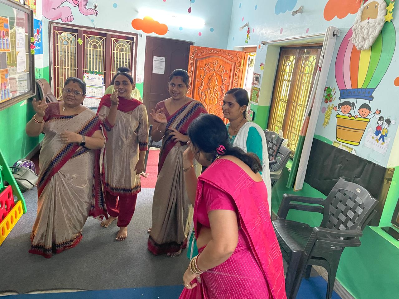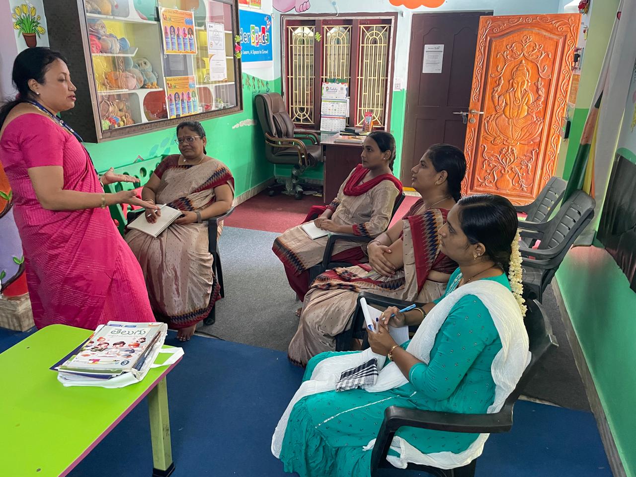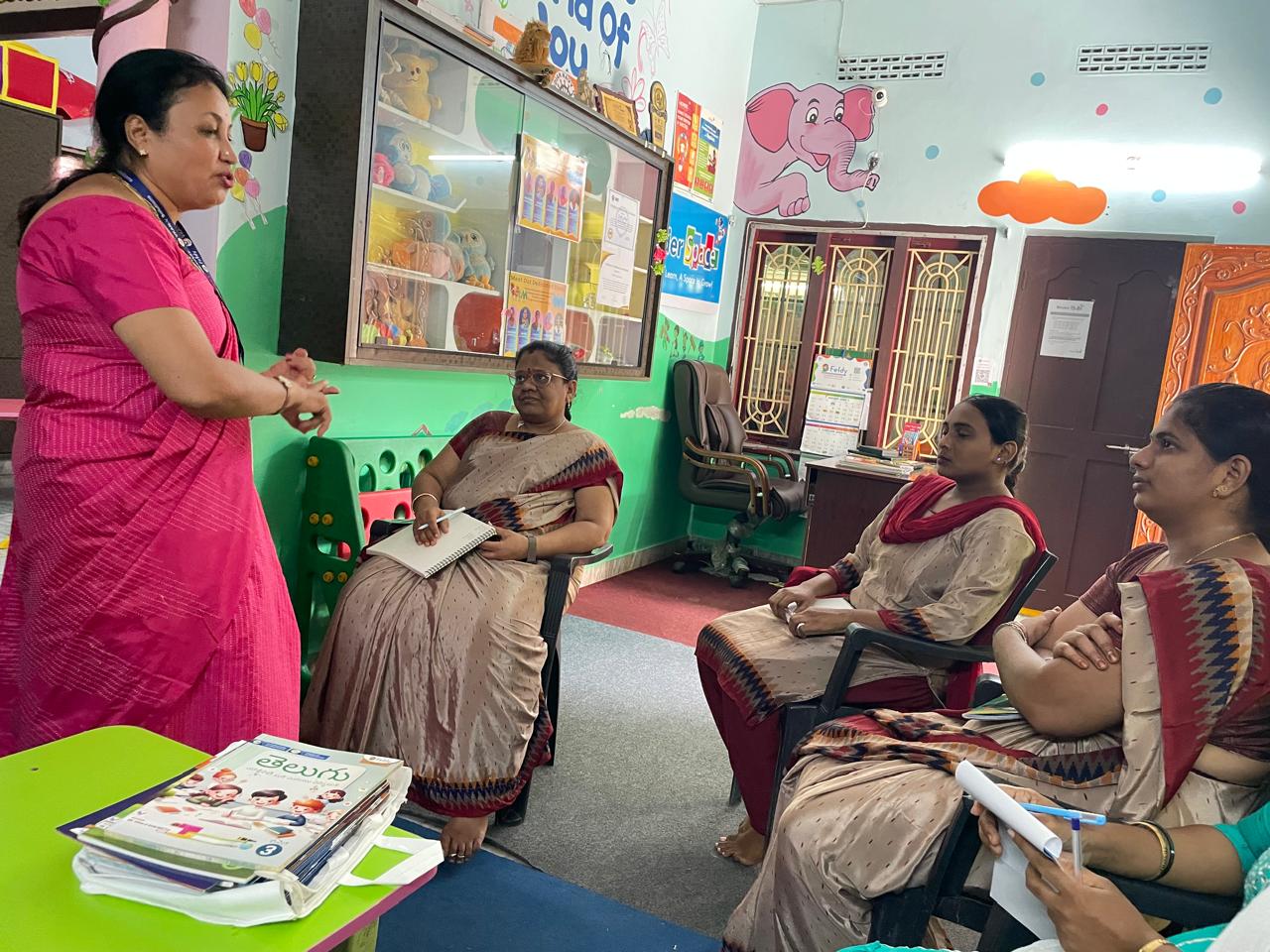 The training team conducted a dynamic kindergarten teacher training session at Kinder Space Preschool, Vijayawada, focusing on innovative classroom strategies for early learners.